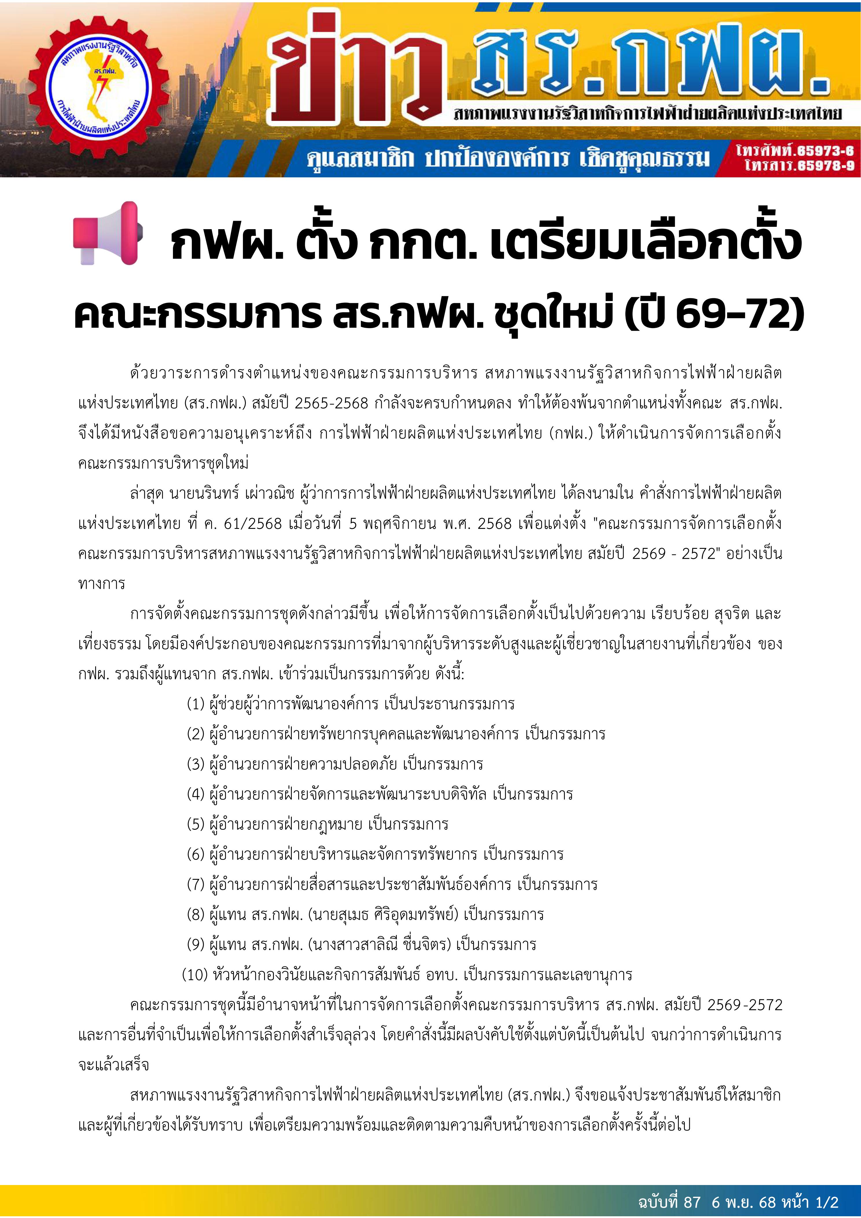 ระเบียบว่าด้วยการเลือกตั้งคณะกรรมการบริหาร สร.กฟผ. 2568